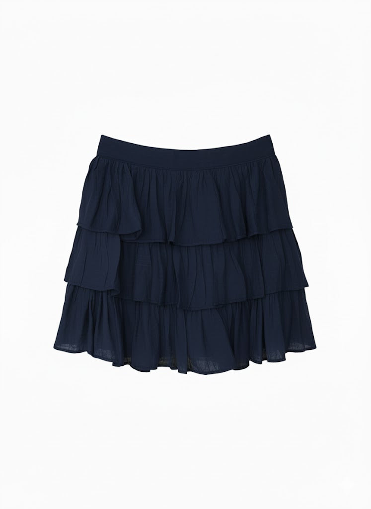 Falda corta de 3 olanes olanes en Tencel con forro de popelina, cierre trasero de pretina